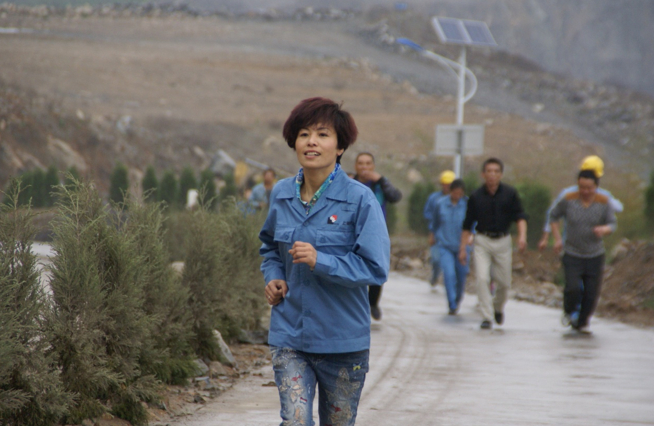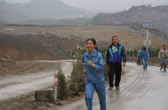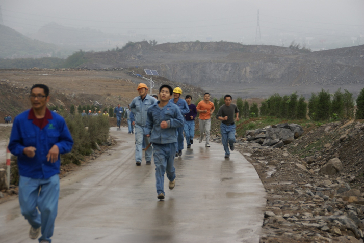 剛開始,隊伍顯得很擁擠??墒?,100米、200米……隊伍逐漸拉長,盤山公路上隊員三個一群、兩個一伙。有的隊員領(lǐng)頭跑在最前面,健步如飛;有的隊員插著腰,大口大口地喘著氣兒;有的隊員雙腿像灌了鉛,卻仍是努力向前奔。幾位女隊員表現(xiàn)很不錯,頗有“巾幗不讓須眉”之風(fēng)。山道上,加油吶喊聲此起彼伏。經(jīng)過近半小時的努力,參賽隊員終于全部跑到終點。工會委員蔡群榮遞給大伙兒的一杯杯熱葡糖糖,讓我們疲勞頓消。