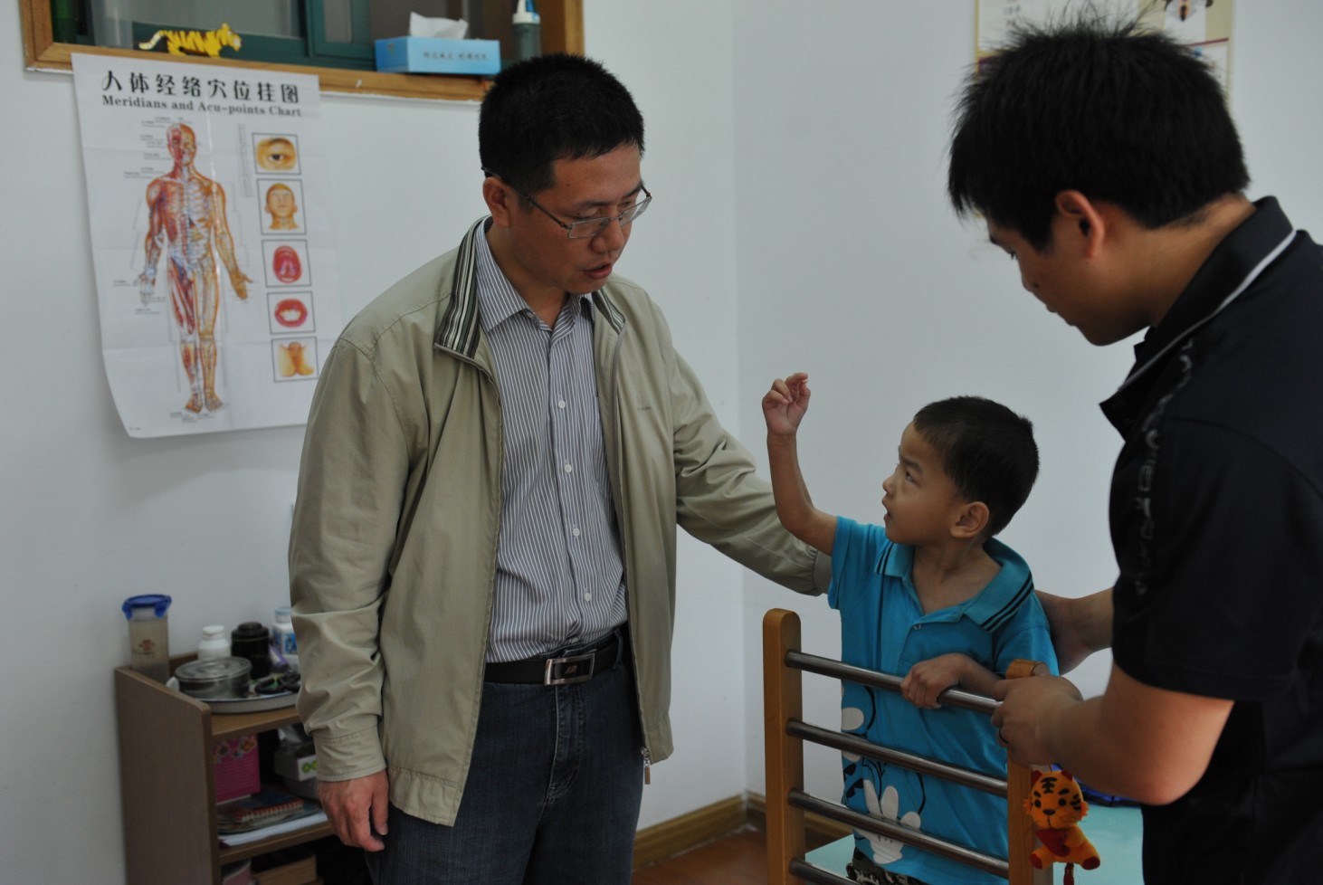 在福利院院長(zhǎng)的陪同下,姚紹武副總經(jīng)理參觀了福利院內(nèi)的各項(xiàng)建設(shè)、設(shè)施,逐一查看每一個(gè)房間,并詳細(xì)詢問孩子收養(yǎng)和康復(fù)情況。當(dāng)?shù)弥簧倌X癱兒童經(jīng)過訓(xùn)練能夠生活自理甚至獨(dú)立行走時(shí),他露出了欣慰的笑容,摸著孩子們的頭,鼓勵(lì)他們要自信自立??吹胶⒆觽兌嫉玫饺嬲樟蠒r(shí),姚紹武深情地說,這里就是孩子們的家,看到他們天真快樂的樣子我真替他們感到高興。