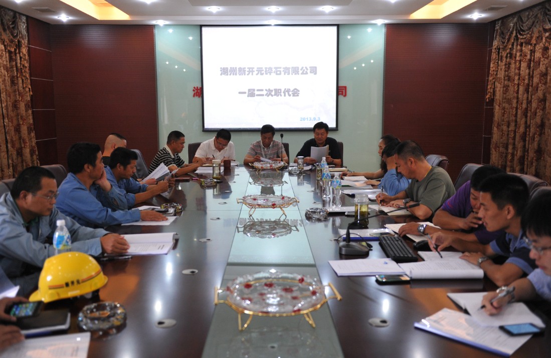 2013年9月3日,湖州新開元碎石有限公司一屆二次職代會于13:30在湖州新開院碎石有限公司會議室正式召開。此次會議由公司副總經(jīng)理、工會主席戴光良主持,主要宣讀并審議通過了《湖州新開元碎石有限公司職工薪酬調(diào)整方案》、《湖州新開元碎石有限公司休息休假管理規(guī)定》、《湖州新開元碎石有限公司職工獎懲條例》、《湖州新開元碎石有限公司整紀(jì)領(lǐng)導(dǎo)小組名單》、《湖州新開元碎石有限公司安全、質(zhì)量、環(huán)保清潔生產(chǎn)、降本節(jié)支加獎發(fā)放細(xì)則》以及《湖州新開元碎石有限公司第一批勞務(wù)派遣工轉(zhuǎn)正實施細(xì)則》。